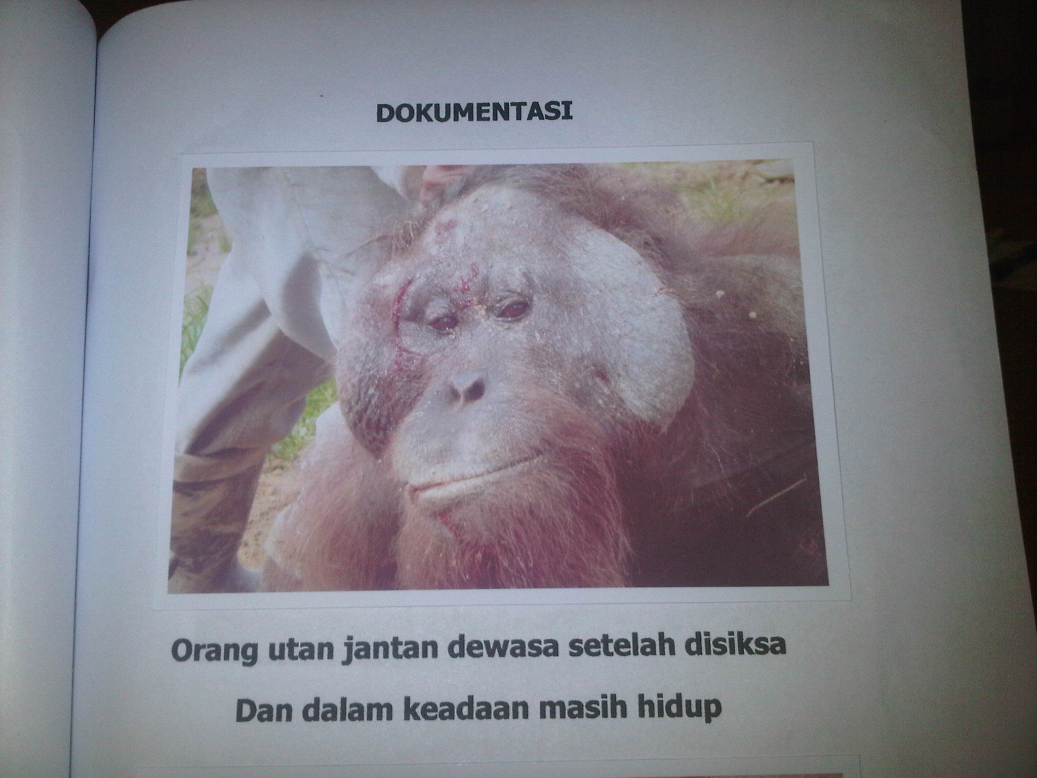 Dalam 16 foto-foto dokumentasi tersebut, tergambar kondisi orangutan yang diburu, ditangkap, dan lalu dimasukkan ke dalam kerangkeng. Kondisi orangutan pascapenyiksaan hingga gambar orangutan tewas yang hanya menyisakan kepala.
